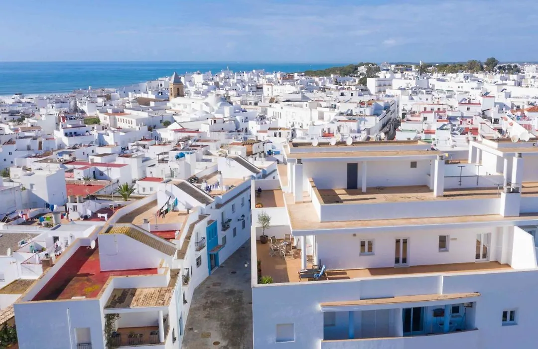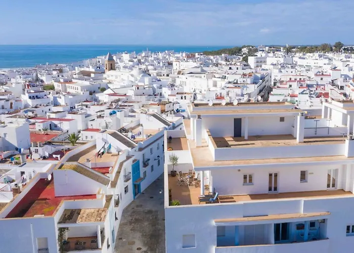 Das 2-Zimmer-Terraza Trafalgar Apartamento Tipo Penthouse Con Enorme Terraza Y Vistas Al Mar Conil De La Frontera liegt 5 Fußminuten vom Markt Mercado de Abastos entfernt und bietet einen Blick auf die Stadt. Diese 120 m² großen Apartments bietet eine Terrasse und liegt in circa 700 Meter Entfernung vom Parque Atalaya.